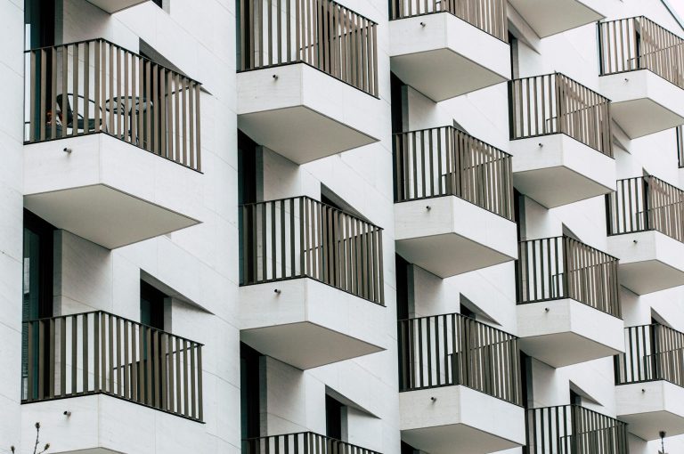 Elegant living room with a cozy couch and modern kitchen area, perfect for home interiors.